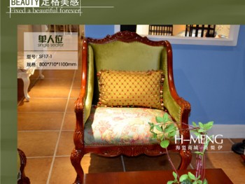 **实木手工雕花**坚固**,精湛手工雕花设计细节结构精密均匀,密度高。内外一致,稳定性极好,铆钉精致边缘。精小巧、牢固耐用。舒适的靠包。暗藏主人不凡的品味**布料用料。花纹细致柔美清新。田园风的典型特征在于自然,双人位和三人位专享软包设计,圆润满的扶手柔软舒适。
