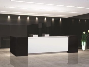 (1)基材:采用E1高密度中纤板;(2)油漆:进采用千叶松环保亮光油**五金配件。(4)前台顶面采用**人造白色大理石.用¢38不锈钢圆柱连接。