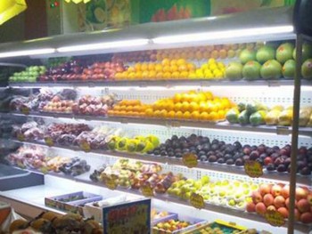 6、超市风幕柜配夜帘:在柜体上还安装了夜帘,主要是在停业后拉上,可减少冷气外泻达到节能的效果.