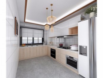 伟询极简全屋定制L型橱柜环保免漆板木纹橱柜双饰面板极简轻奢橱柜生态板橱柜环保橱柜
