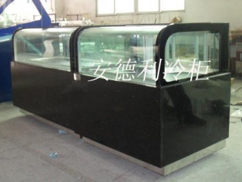 寿司柜-寿司柜批发-寿司柜图片-岛柜-冷藏柜-保鲜柜。柜尺寸规格不固定,可根据需要设计订做。广州市白云区德利制冷设备厂,全国订购电话:15338055390 QQ 1144512367寿司柜特点:寿司 1. 柜体曲面玻璃展示;2. 自然冷却,冷气在柜内上部下落,温度均匀;3. 机械温控,使用方便;4. 可选择不锈钢盆2"1/6:173×162×65; 5. 滑动玻璃门,节省空间; 6. 全封闭低噪音压缩机和风机;