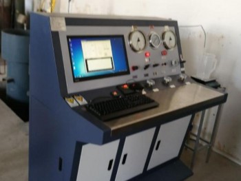 通过计算机控制,对驱动气源压力进行调整调整,以能得到相应的液压力,经过压力控制系统,由高压管路输送给待测时间,进行静压试验和爆破试验。