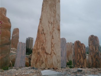 南阳晚霞红大理石景观石头纳入文化艺术的范畴,从美学**、色彩学的艺术来看,与冰冷的玩石通灵,寄情于石,情石相交,达成"石人合一"的境界,然后展开思想的翅膀,以丰富地想象,把顽石变景观石,把景观石头变为艺术品,通过欣赏南阳晚霞红大理石景观石头的艺术美,从中得到一种慰藉、一种享受,这**是景观石的艺术美。