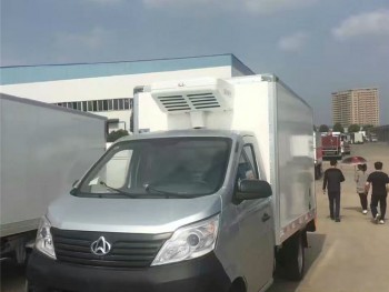 长安2.75米冷藏车 采用长安原装底盘,重庆长安98马力国五发动机。厢体长2.68*宽1.50*高1.55米,厢体采用内彩钢板外玻璃钢,内夹8公分聚氨酯保温材料(保温效果优)。采用国产知名品牌制冷机组,冷藏温度可达-5度~-18度 (图下)