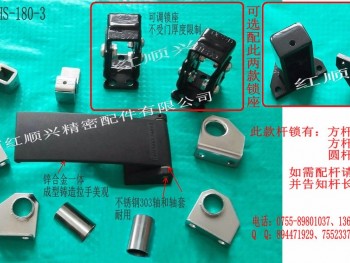 深圳市红顺兴精密配件有限公司 防爆门扣 规格;标准型号:HS-180-1品牌:HSX 生产厂家能力:专业生产性能及优点:防爆性能好产品包装:纸箱产品用途:烤箱,烘箱防爆门锁售后服务:二年内出现掉轴、掉铆钉、间隙过大包退换,终身保修