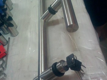 产品安装后主要特色,非常人性化,方便我们开门锁门,只需要插入钥匙轻轻转动一周即可开门锁门,扭手这边需要向内轻压再进行转动(因为有离合的缘故,所以要向内压下),完全取代了拉手+U型锁的结构。此款锁锁舌用材不锈钢实心棒,达到16mm厚度,安全方面无任何隐患。锁我们采用的是A级原子双曲线锁芯,更大的增加了此款锁的安全性能。我们还非常人性化的配备了防尘地套(下图),更好的服务了此款锁。