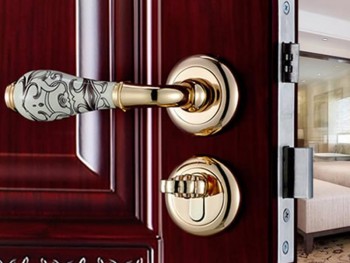 安装步骤:A.确保斜舌斜面与关门方向一致,当需要调整锁体开门方向时,向上 拨开斜舌换向片,将斜舌推进锁体后,旋转180°,根据安装纸规画线开孔。B.将锁体放入孔 。C.预紧衬板螺钉。D.将方杆穿过门板插入锁体。E.安装内外面板,使把手转动顺 畅,预紧螺钉,使钥匙及旋钮转动顺畅。F.安装扣板及扣盒,对齐锁体,应使锁舌与之配合顺畅 ,拧紧螺钉。 产品保养:1、特别注意的是,在没有刷油漆前开 孔,油漆干后才将锁安装上。千万不要在油漆未干**装门锁。油漆的挥发性气体会减少锁的使用寿命。2、锁具在平日开关门的过程中**握着执手把锁舌旋进锁体,关好门后再松手,不要用力撞门 ,否则会减少使用寿命。锁具使用一段时间后,会出现开启不顺畅的现象,不要往锁心内滴机油,将滑 石粉或铅笔心的细屑滑入锁心内即可。3、另外,不要用湿布擦拭锁体和执手,因为有些金属材质 的锁具会因此生锈;合金材质的锁具会将镀层磨掉,失去美观的效果。4、应防止酸碱盐类的侵蚀 ,不能使门锁沾污。我厂生产的锁具品种齐全,价廉物美,服务周到,交货及时,“顾客至 上&dquo;的经营理念。