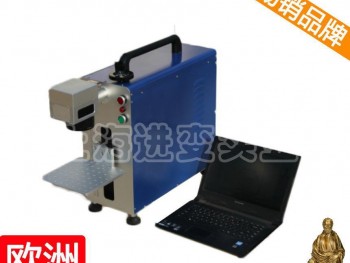 光纤激光打标机产品简介:光纤激光打标机采用国际成熟光电转换率高的光纤激光器,整机体积小巧,输出光束质量好,标刻精度极高,深度好。采用风冷方式冷却,可长时间免维修运行。广泛应用于对光洁度、精细度高的标记领域,如钢、铜、铝、金银等大部分金属、塑料、陶瓷、电子器材,适用于钟表、模具、位图打标、包装、医疗、烟草、洁具、食品、电子、礼品等行业,是高速标记的好选择。光纤激光打标机主要技术指标:激光介质:光纤**大激光功率:10W/20W激光波长:1060nm激光重复频率:20KHZ--100KHZ打标范围:110*110、150*150标记线束:≤7000mm/s标记深度:≤0.4mm**小线宽:0.012mm**小字符:0.15mm重复精度:+0.003mm激光器升降行程:220mm二给移动态行程:120*80电力需求:220V/单相/50HZ/4A整机耗电:500W便携式光纤激光打标机技术参数:**大激光功率:10W/20W激光波长:1060nm光束质量M2:<1.4激光调Q频率:20kHz~100kHz标准雕刻范围:110mm×110mm选配雕刻范围150mm×150mm雕刻深度:≤1mm整机功率:500W**小线宽:0.01mm重复精度:±0.0001mm电力需求:单相交流AC90-250V/50Hz5A雕刻速度:500字符/s(单线罗马字体字高1mm)冷却系统:风冷