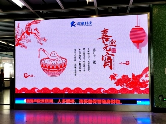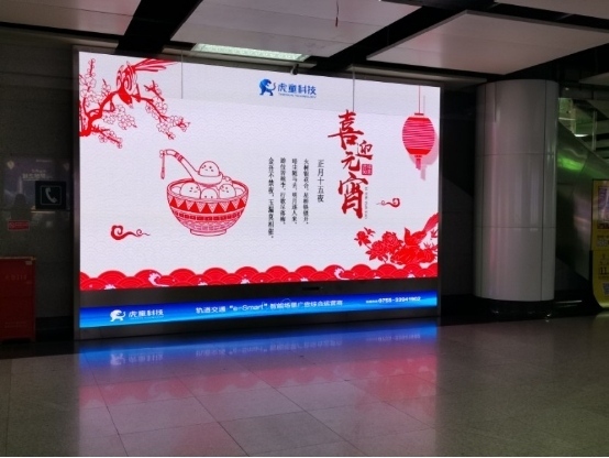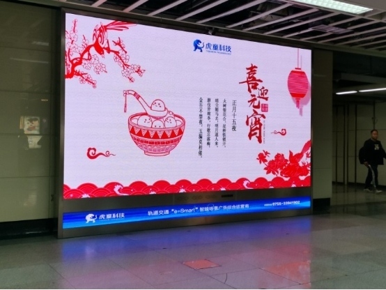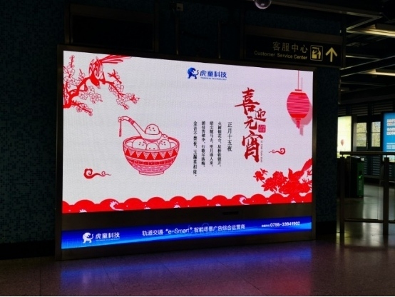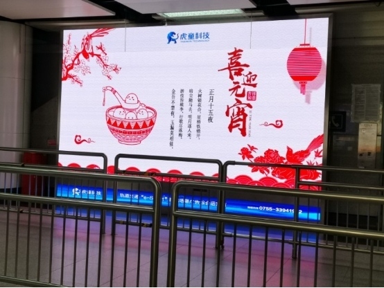 深圳虎童科技有限公司作为“轨道交通e-smart智能场景广告综合运营商”,在纵贯深圳中轴、日均客流量约为90万日均人次的深圳地铁4号线中,投入运营平均面积约10平方米的小间距LED显示、最高分辨率可达4K的智能大屏的智能高清互动大屏,汇通了九个换乘大站与二十个以上商业综合体,以16:9黄金画面比例来显现饱满细腻的色彩画面结合清晰流畅的声音,力求将元宵的真挚祝福献给更多乘坐地铁的深圳市民。望大家在忙碌通勤中拾得暖意,盼来团圆,眷侣并肩,一切顺利。
