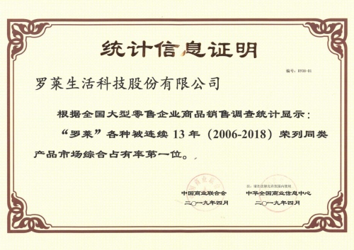 2019年4月11日,人民网对“罗莱床上用品、各种被连续13年、14年荣列同类产品市场综合占有率第一位”进行了重点报道,赞扬了罗莱通过品质的坚守连续十多年赢取消费者的支持与认可。