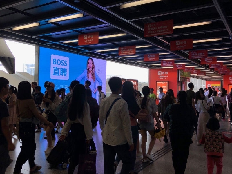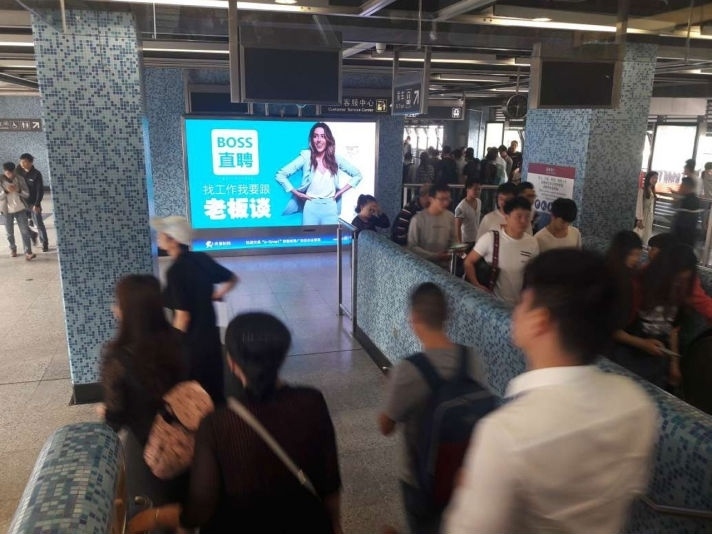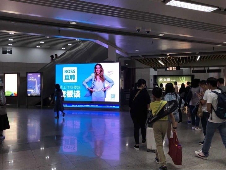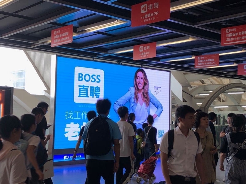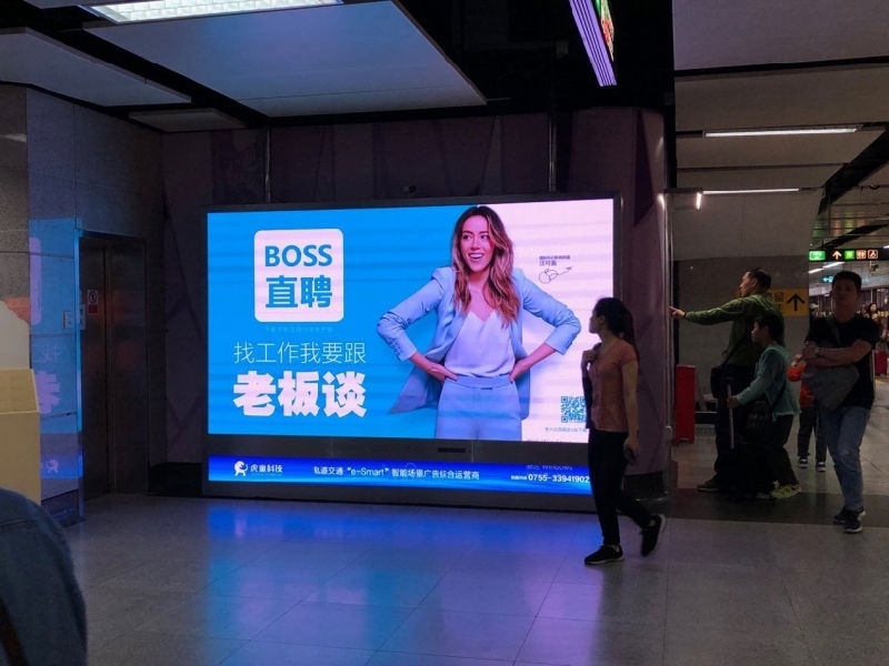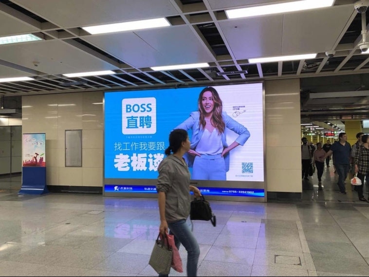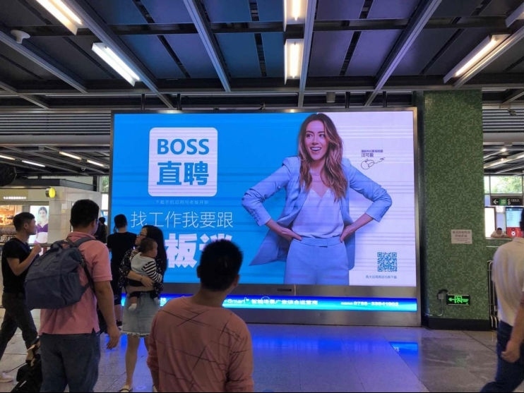 深圳地铁4号线是一条约90万/日均客流人次 2700万/月均客流人次的超级动脉地铁干线,拥有两个国家一级交通枢纽深圳北站和福田口岸站、九个换乘大站及无缝对接二十个以上的商业综合体。虎童科技为BOSS直聘提供精准曝光的投放策略,在这条超级动脉地铁大线内对准地铁占半数以上的企业中坚力量、白领等受众人群,每日高频次的大屏曝光量,为BOSS直聘汇入更多流量,使BOSS直聘的品牌记忆力更为坚固,达到更大力度的宣传效果。