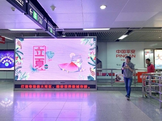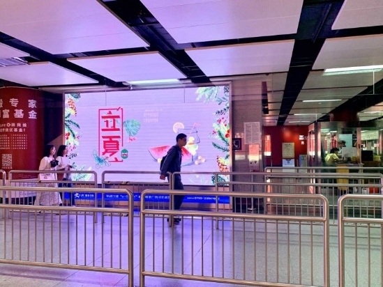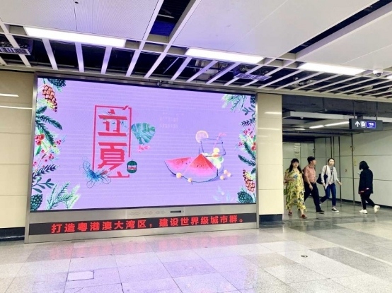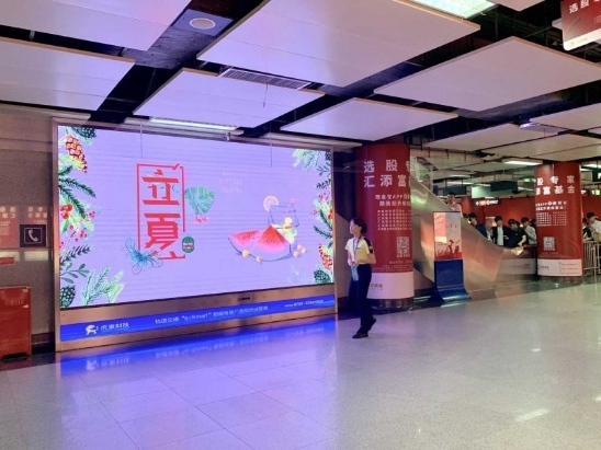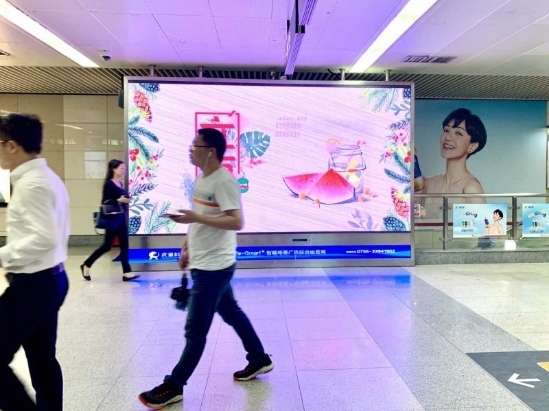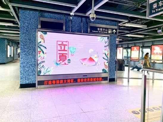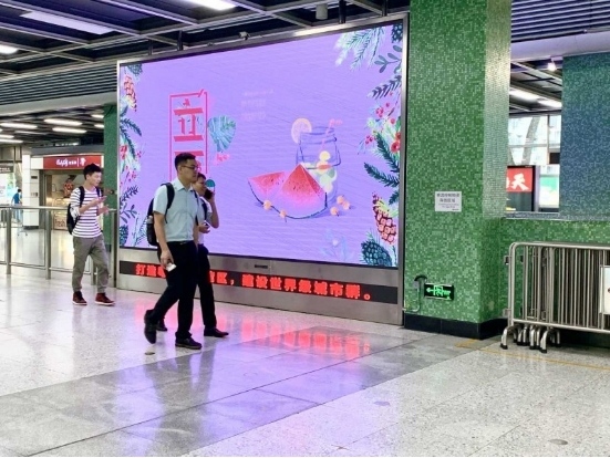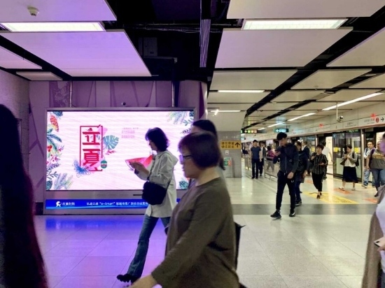 在深圳地铁4号线的人流必经要道,深圳虎童科技独家投入运营的“E-smart”智能大屏已陪伴地铁乘客度过许多被国人喜闻乐道的传统节日和假日,为各大知名品牌与广告客户提供完备的地铁广告营销策略,得到了客户的众多好评,赢得市场的积极响应。高清饱满的视觉效果与清晰抓耳的听觉冲击结合呈现于“上顶天花,下抵地面”的智能大屏中,如同经历一场走入电影院的沉浸式体验。