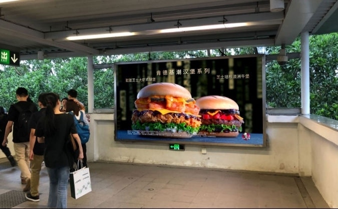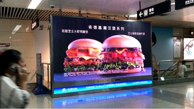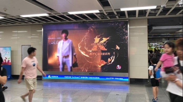 全球最著名的快餐品牌肯德基年中发布新品汉堡,近日与深圳虎童科技有限公司公司独家建设运营的地铁大屏媒体达成合作,在日均120万人次的深圳地铁中轴大线上,利用高达4K画质、具备立体音效和高达20平方米的虎童科技地铁智能高清互动大屏媒体上第一时间推出新品汉堡。