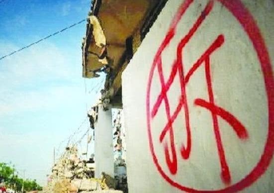 第四个原因,划要点,给周围的人一种吵醒的效果。拆迁作业往往对周围也是一种要挟,随时可能有崩塌坠物的风险,划圈是为了警醒周围的人们留意拆迁施工风险。