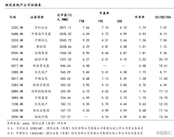 本期(2019/09/09-2019/09/20)恒生地产分类指数跌落1.61%,物业管理职业指数本期跌落1.77%,同期恒生指数小幅0.96%。恒生地产分类指数小幅跑输恒生指数0.65%,物业管理职业跑输恒生指数0.81%。现在房地产板块PE(TTM)为6.71X,板块估值已接近近年估值底部区域。物业管理职业PE(TTM)27.75X,仅次于可选消费及日常消费职业,位居一切板块的第三位。