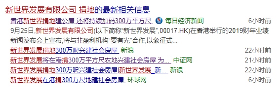 1、香港四大宗族之一的“ 郑家 ”在9月25日宣告,宗族旗下的新世界发展有限公司决议以标志式的1港币租金,捐出28,000平方尺的地皮兴修香港公共住所,以协助有小朋友的低收入家庭 。