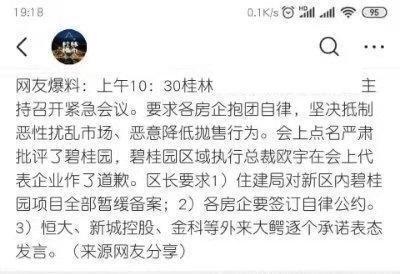 最近,一则碧桂园降价的音讯,在网上炸了窝,听说网友爆料,9月20日某地紧迫召开会议:要求各大房企坚决抵抗打乱当地房产商场的歹意降价兜售行为,期望各大房企能抱团自律,坚持住,保证房价坚硬。并点名批判碧桂园,碧桂园区域履行总裁当即在会上抱歉。