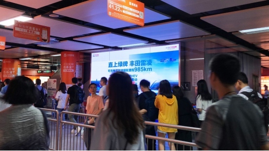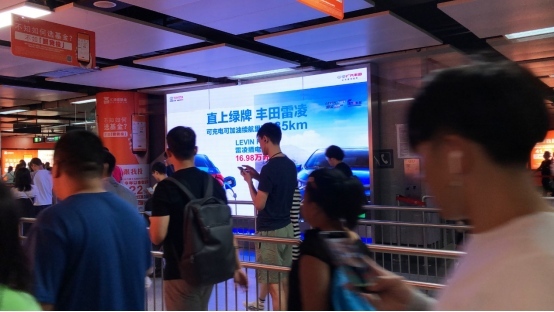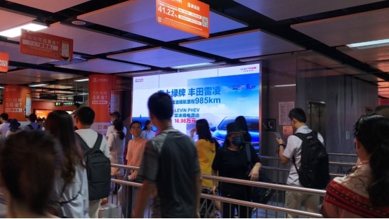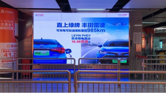没有了路程焦虑、车牌焦虑,还有比燃油车低得多的油耗,比纯电动更高的保值率,丰田雷凌PHEV上市后继续热销的根本原因正在于此,在金九银十的出售旺季,一汽丰田丰田雷凌PHEV与独家运营深圳地铁中轴线的虎童科技大屏媒体携手向顾客引荐这款“超值”车,在地铁内经过高频次、高曝光、屏均10平方米、立体音效的多媒体数字大屏充沛展现车型的亮点,大屏媒体坐落客流必经的通道交汇处,形成了杰出的视觉饱满观看作用,引起了广泛的影响和好评。