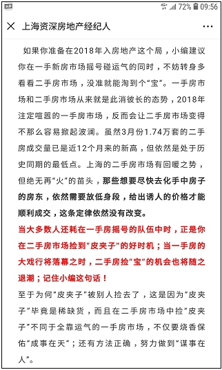 咱们有必要清楚一点,绝大部分从事房地发生意作业的人员都非上海户籍,中短期内也不或许有才能在上海置业落户,上海房价的凹凸在现在关于他们来说没有多大实践意义,而完结成交赚到佣钱才是头等大事,所以悉数有利于成交的手法和手段都是选项,举高房价或是杀低房价的底子意图都是为了成交,商场对立面越大,水就会越浑,鱼岂不是更越简单摸到?