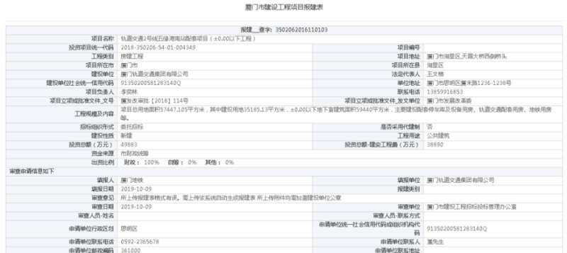 近来轨道交通2号线五缘湾南站配套项目(±0.00以下工程)报建发布,项目坐落厦门市湖里区,天圆大桥西侧桥头,项目总用地面积57447.105平方米,其间建造用地35185.13平方米,±0.00以下地下室建筑面积59440平方米,首要建造配套停车库及设备用房、轨道交通配套用房、地铁用房等,总投约49883万元。