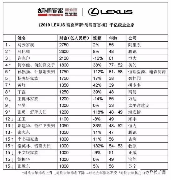 那么家居业“战绩”怎么呢?红星美凯龙董事长车建兴以380亿财富登上家居业第一,排名位列胡润百富榜第72位,排名较上一年下降11位;欧派家居集团董事长姚良松,以365亿财富位列家居业第二,排名榜单第76位,名次较上一年上升了19位;欧普照明马秀慧宗族则以185亿元排名家居职业第三,排名榜单第191位。此次胡润百富榜是胡润研究院自1999年以来接连第21次发布,上榜门槛接连第七年坚持20亿元,共有1700多位企业家。在1700多位企业家中约有50位我国家居职业富豪。特此整理了一份家居业的财富名单,包含家具建材、家用电器、家纺、装修等多个范畴。