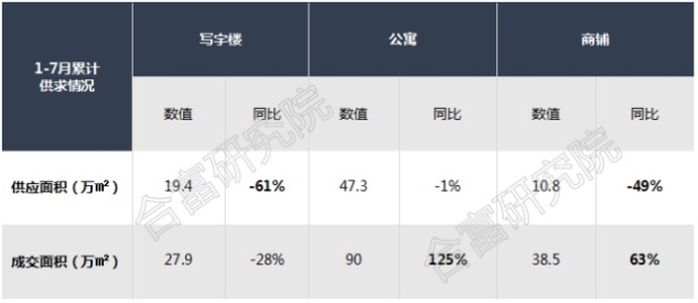 据合富大数据闪现,本年1-7月全市公寓累计成交已达90万平方米,现已逾越上一年全年的87.6万平方米,月均成交近13万平方米,同比大增125%。