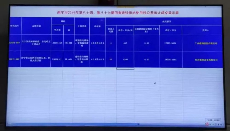 杭州金树置业有限公司(金翰控股)则以总价2.4亿元成功斩获坐落江南区的19.645亩GC2019-089地块,再次落子江南,这是金树第2次在南宁拿地。