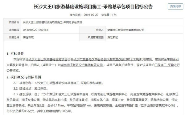 除了地铁建造进程加快,景区空轨也传了新消息。据长沙公共资源交易中心官网材料显现,大王山旅行休假区景区空轨将于10月开端施工,北起山塘站,南至观音港,沿途通过恒大童国际、湘江欢乐城等多个旅行景点,估计2021年2月通车试运营。