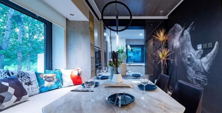 一面是在规划师特意放置的犀牛磨砂墙贴画,