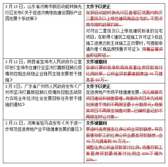 在修正删去或撤回的方针中可以正常的看到,驻马店市和宝鸡市的方针都提及“下降首套房借款首付份额”;济南市的方针提及“松绑限购”;广州市的方针则被以为是解禁“类住所”。