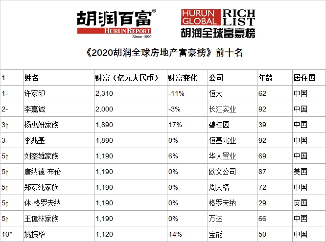 这儿,需求重视的是,《2020胡润全球房地产富豪榜》(Hurun Global Real Estate Rich List 2020)是最近发布的《2020世茂深港世界中心•胡润全球富豪榜》的子榜之一。胡润研究院仅将以房地产为主业的企业家列入榜单,并呈现其总财富。且财富核算截止日期为2020年1月31日。