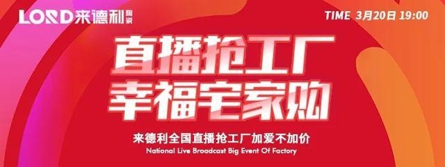 在挑战和时机并存的情况下,来德利从终端的利益动身进行多方导流,严密联合经销商进行营销革新。3月20日晚上,"直播抢工厂,美好宅家购"——来德利全国直播抢工厂大型促销活动成功举办。直播进程惊喜秒杀环节不断,红包雨抢不断,优惠力度十足,业主参加热心一路高涨。