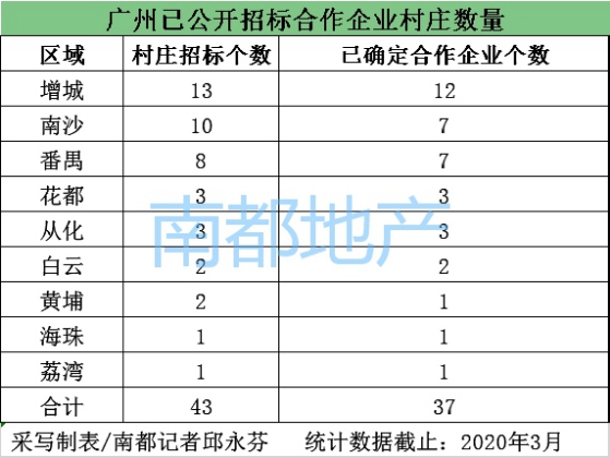 南都记者计算发现,自2018年5月广州发动旧村改造揭露投标合作企业以来,广州已有43条村发动揭露投标合作企业,现已有37条村践约招到满足的合作企业。