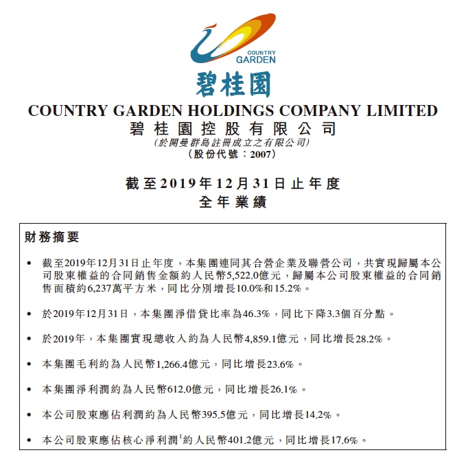 碧桂园控股有限公司(02007.HK)于3月27日交出2019年度成绩单,各项目标显现,该集团在盈余持续添加的基础上,运营风格更趋稳健。