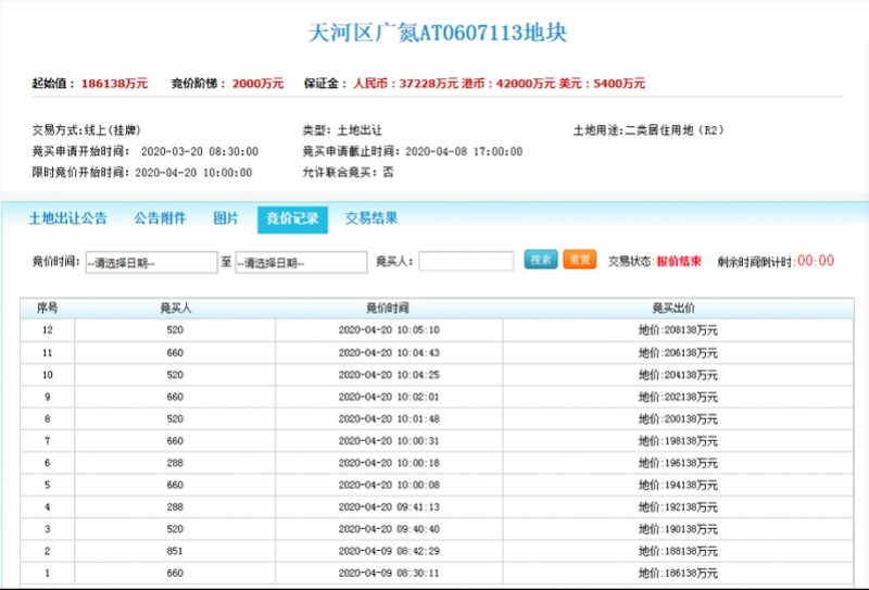 今天出让的广氮AT0607113地块,开端方案于上一年10月竞拍,后因故停止出让。本年1月再次挂牌拟于3月15日出让,但终究流拍。但此次出让,却意外招引6家房企报名,且在4月9日就发作了两个报价记载。在今天竞拍开端后,12轮竞价终究将地块总价从18.6138亿元推高到20.8138亿元,溢价2.2亿元,折合楼面地价达35782元/平方米,比上一年珠实所拿地价贵了1782元/平方米。