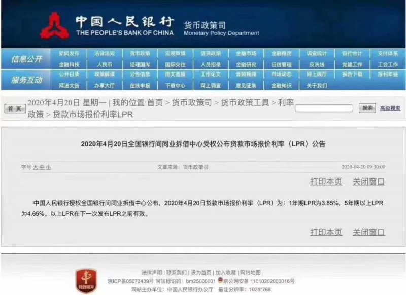 央行发布的借款商场报价利率(LPR)的最新报价成果显现,1年期LPR报3.85%,较上一次下降20个基点;5年期及以上LPR报4.65%,较上一次下降10个基点。