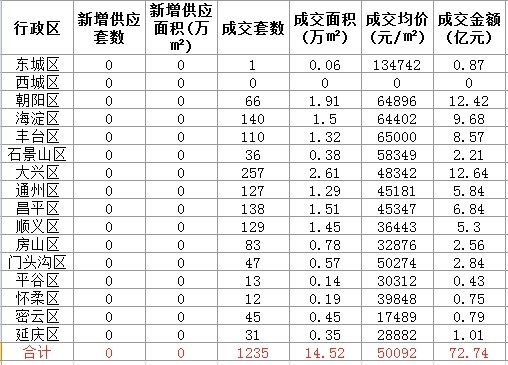 5月上旬北京新建住所商场成交状况列表