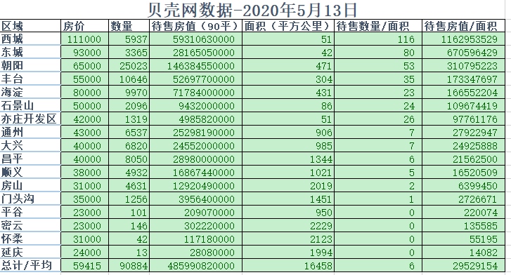 按每套房90平米,贝壳网均匀房值预算,北京市全体待售二手房90884套,北京市待售房产总价值百科是4859.9亿元,是北京市2019年GDP30320亿元的16%。
