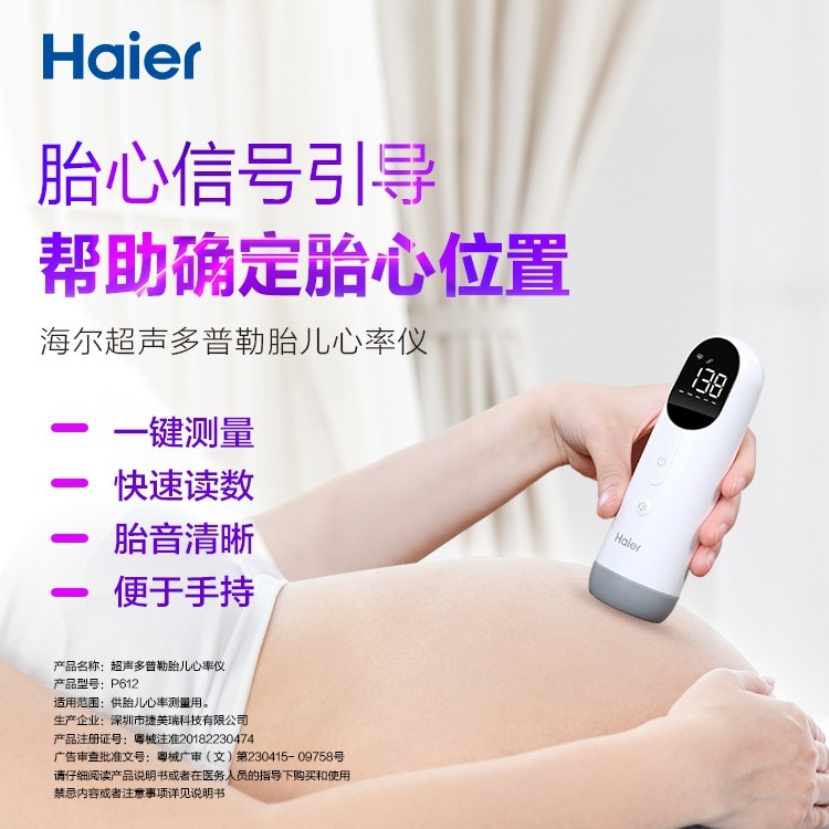 海尔胎心仪全称“海尔超声多普勒胎儿心率仪”,海尔胎心仪,通过胎心信号引导,帮助确定胎心位置。一键测量,便于手持,快速读数,而且胎音清晰、读数准确。