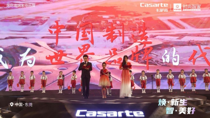 卡萨帝作为中国制造的代表品牌,始终坚定使用原创、精致的产品设计,用更人性化的科技产品和智慧家居方案,深入每一个家庭的生活肌理,让人们生活可以畅享便利和美学。诗歌朗诵节目《中国制造》现场15位可爱的祖国花朵铿锵有力地朗诵着绝美的诗词,与极具感染力的音符一起歌颂着中国制造的快速崛起,也一同见证着卡萨帝用爱创造奇迹,用心打造科技。