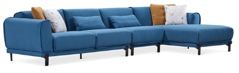 在配色上,运用柔和风铃蓝与花蕊黄撞色搭配,辅以提花面料搭配,呈现出立体有质感的视觉效果。沙发腿采用镶嵌式的碳素钢高腿设计,宛如花茎包裹着花朵,兼顾美观和实用。此外,低靠背的设计,展现出空间的延展性,同时搭配腰枕给予腰部更好的承托与放松,让用户切实体会到左右沙发布艺沙发的那句:你的腰,左右来撑!